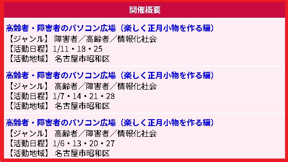 | 【伊勝コミュニティセンター令和8年1月コース】 【八事コミュニティセンター令和8年1月コース】 【昭和区在宅サービスセンター令和8年1月コース】 |